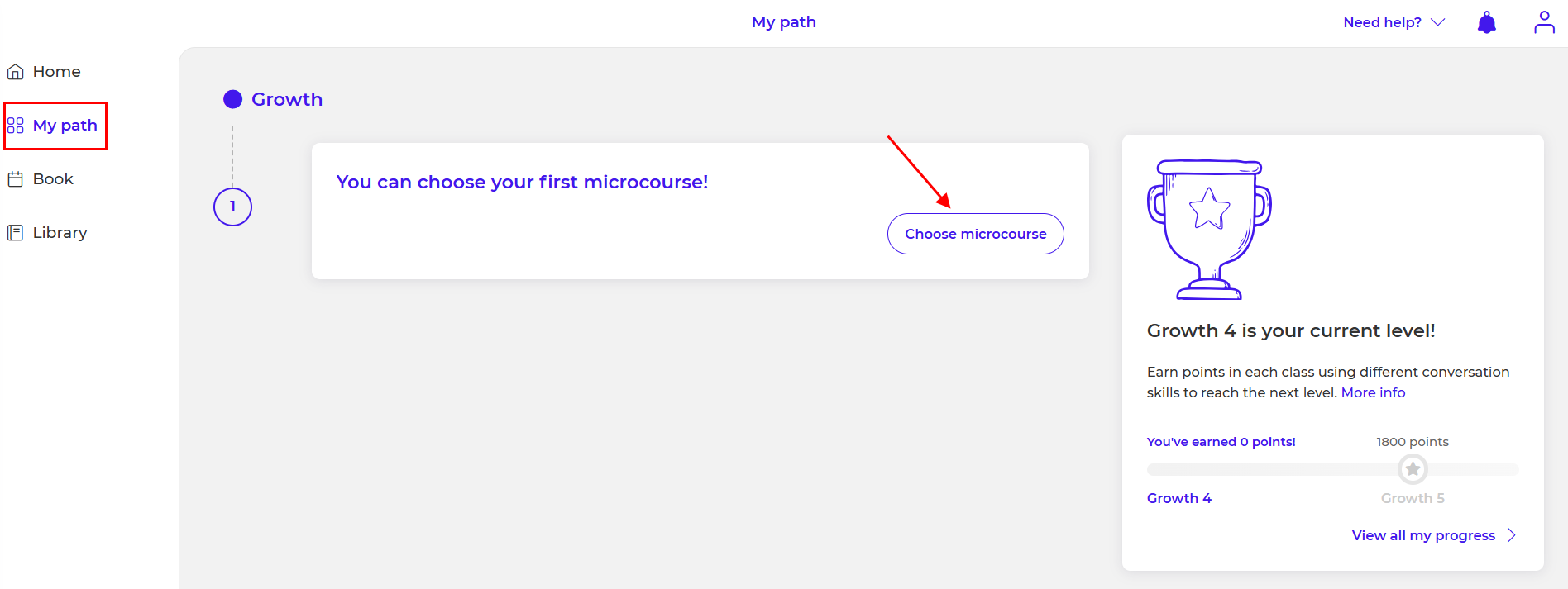 The microcourses you see on your panel are directly related to the level your teacher assigned to you during your first class.