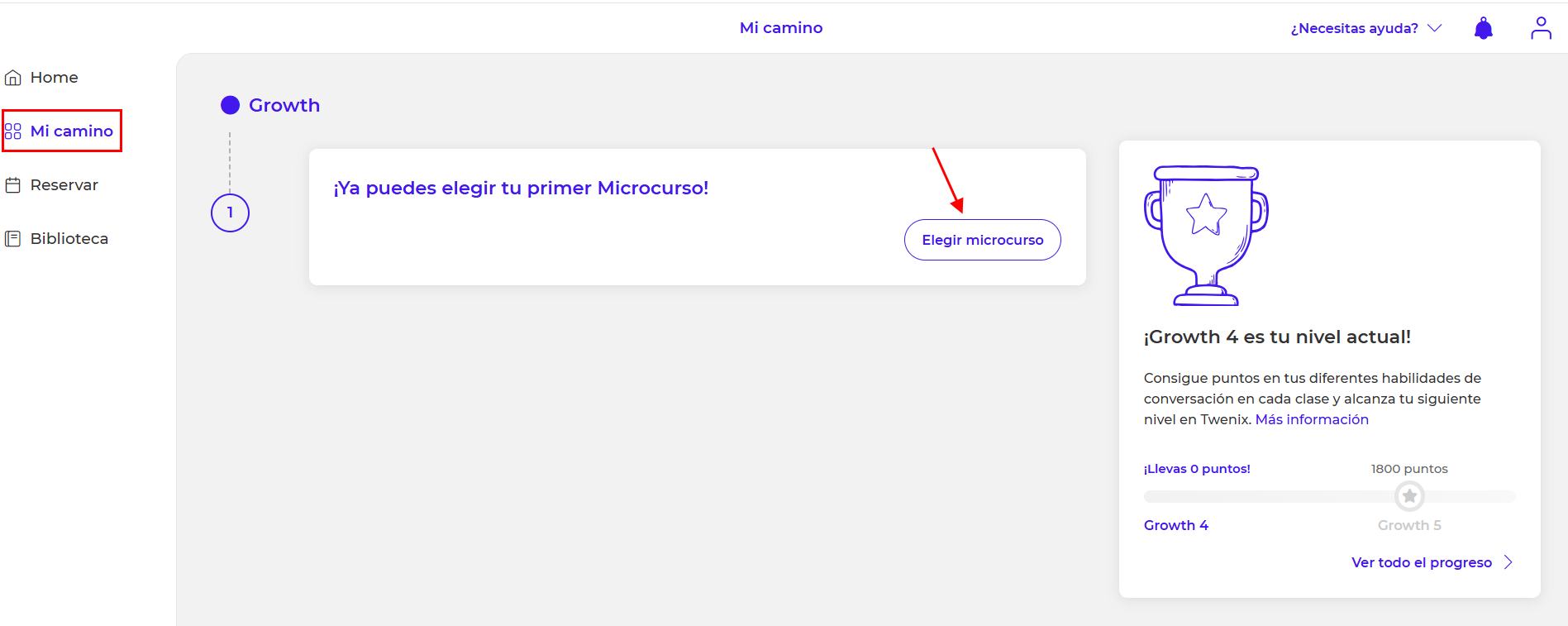 Los microcursos que verás en tu panel están directamente relacionados con el nivel que tu profesor te asignó durante tu primera clase.