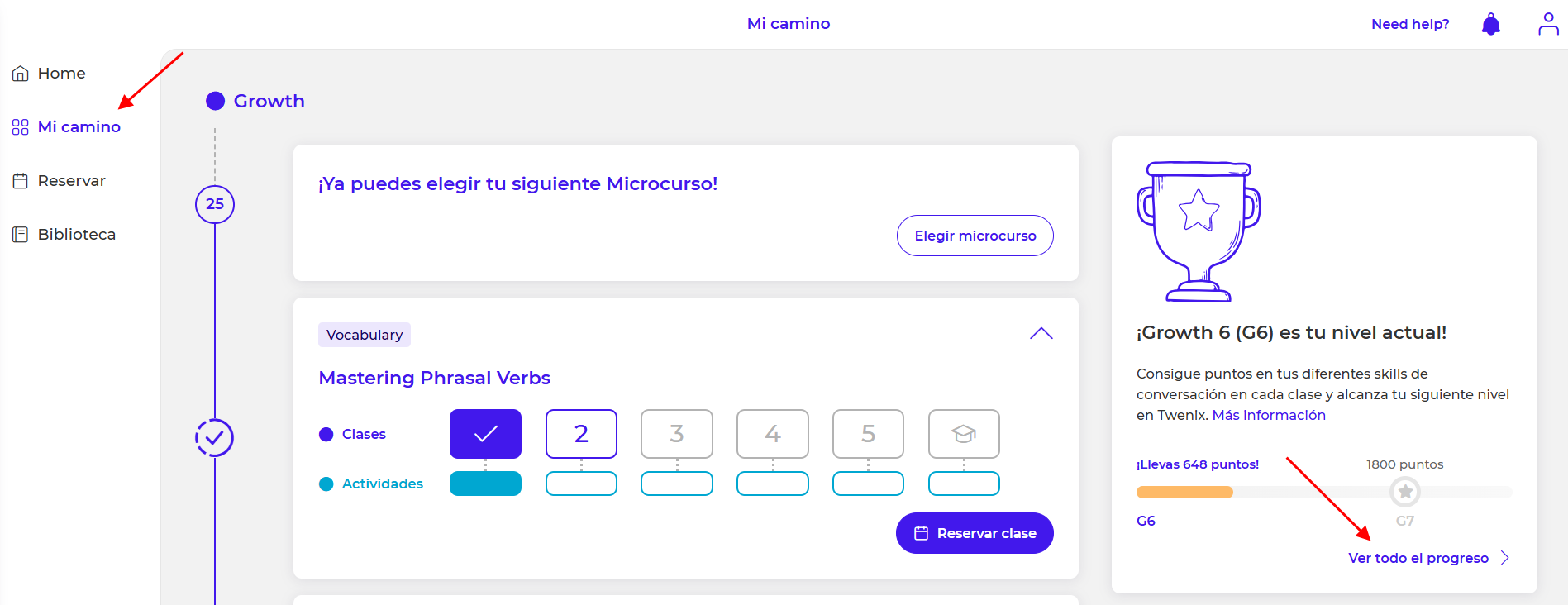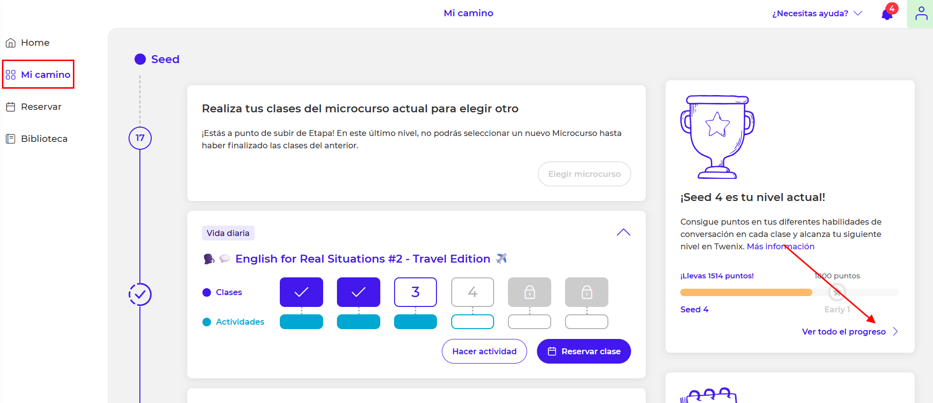 2️⃣ Selecciona “Mi camino” y pincha en “Ver todo mi progreso”.