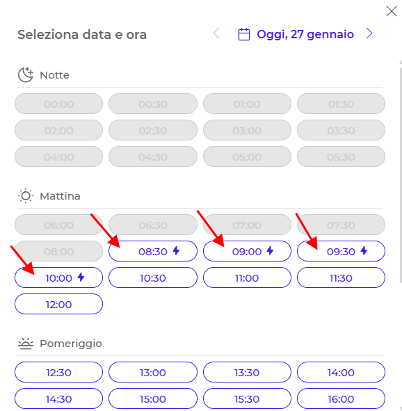IMPORTANTE: Quando prenoti una lezione "dell'ultima ora", ricorda che non sarà possibile cancellarla successivamente, un pop-up ti avviserà prima di confermare la prenotazione.