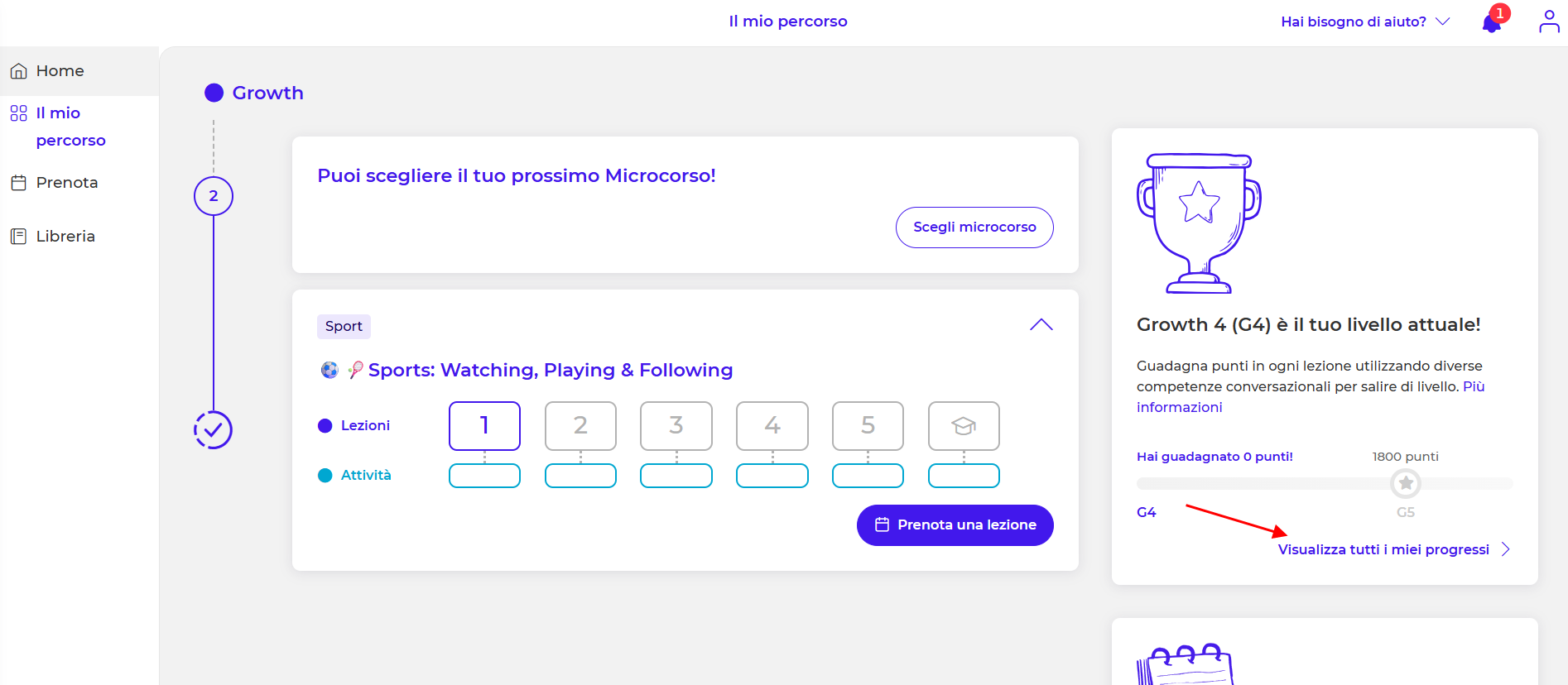 Per accedere alle preziose informazioni e ai feedback dei tuoi livelli già superati, sia i microcorsi che i punteggi che hai conquistato, segui semplicemente questi passaggi: