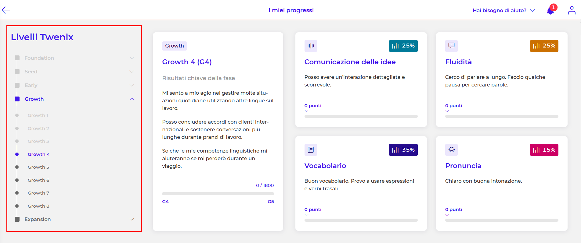 - Nella colonna di sinistra, seleziona il livello precedente di tuo interesse per rivedere i microcorsi completati e i tuoi punteggi.